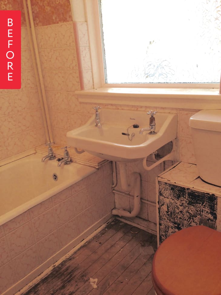 When we moved into our little 1950’s fixer-upper 2 years ago (you might remember previous progress reports on the kitchen and living room), I thought there was no way I could possibly wash in that grimy, cramped and dysfunctional bathroom. It had no shower, the loudest toilet flush on the planet and extremely temperamental hot water. But we ran out of cash and so it turned out I could live with it. For a really long time.