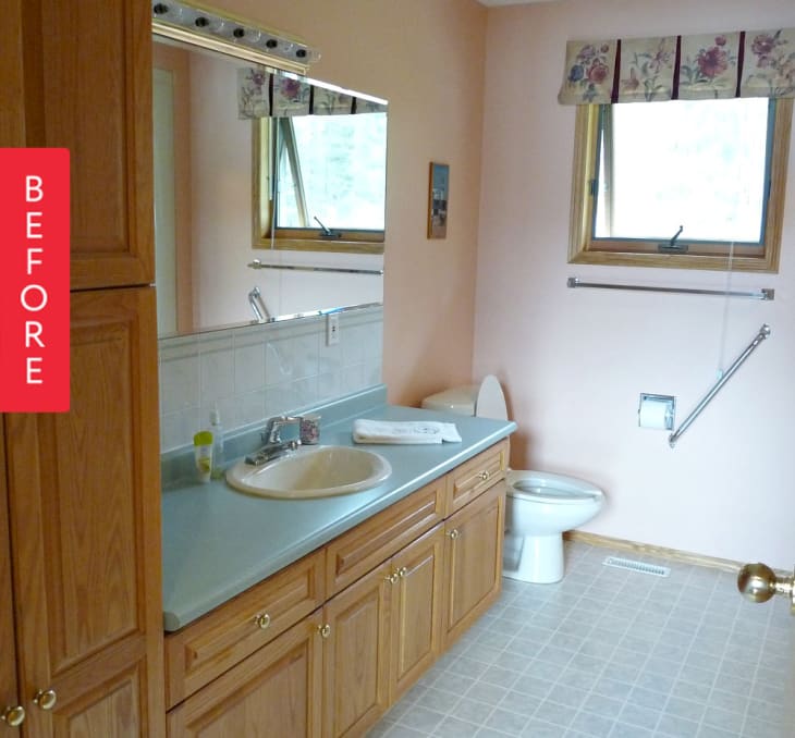 This bathroom looks like my childhood, and while that may be heartwarming for me, Tanya was not that wild about the dated look of her space. After saving up and getting down and dirty and doing a lot of work themselves, Tanya and her husband have a stylish and timeless bathroom in their forever home.