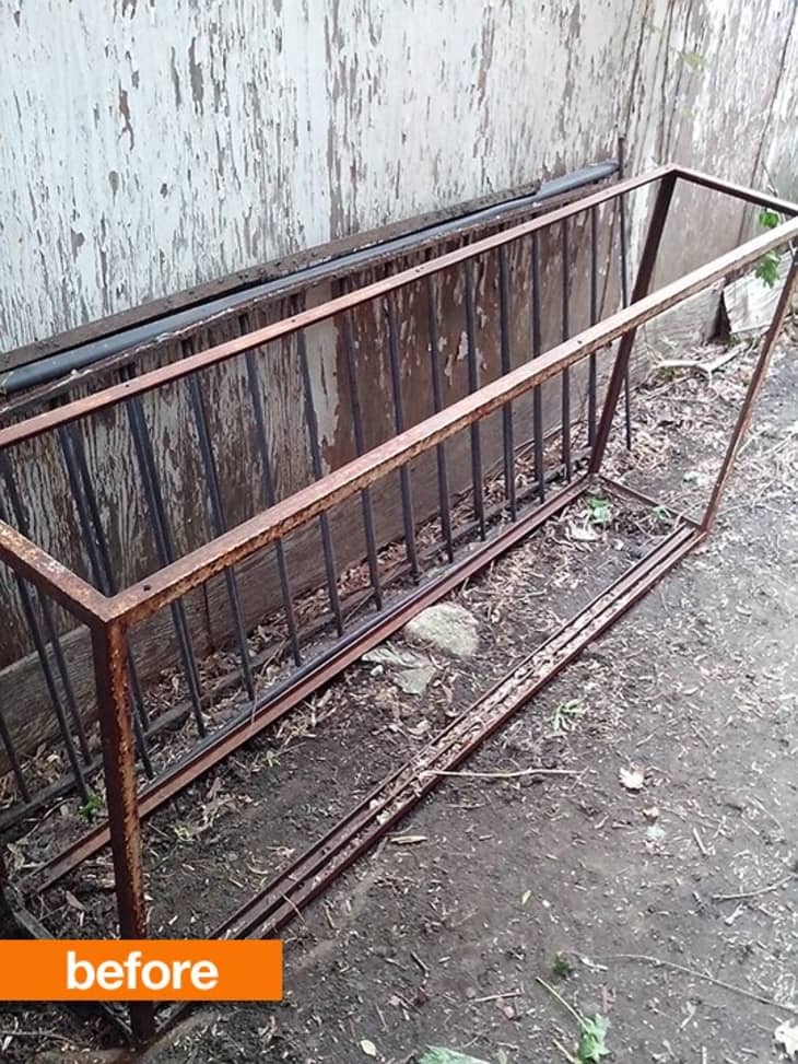 When Julie’s family arrived at their new home in Ottawa, Ontario this gem was waiting in the driveway. The metal frames had been left over from a renovation and had been rusting outside for quite a while. But brave Julie took one look at the pile of rubble and immediately thought, “I can do something with that!”