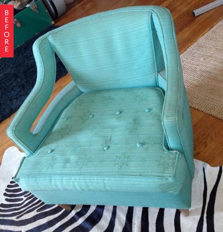 Before & After: A Turquoise Chair Gets a Tropical Print Makeover