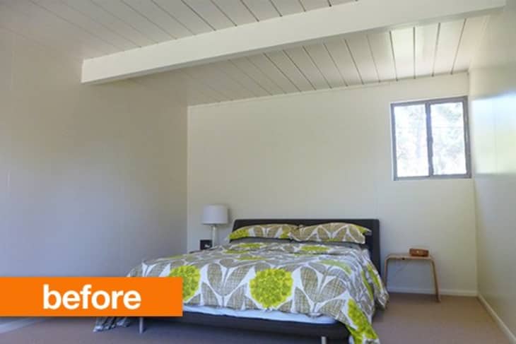 The master bedroom of Andy and Karen’s Eichler was a blank canvas of cheap beige carpeting and off-white walls and ceiling. No more! They gave their master a makeover worthy of the architectural history of their house.