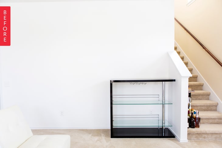 With a blank wall and no storage, Jane decided her living room needed a long credenza on a budget. Perennial favorite, IKEA’s BESTA, to the rescue.