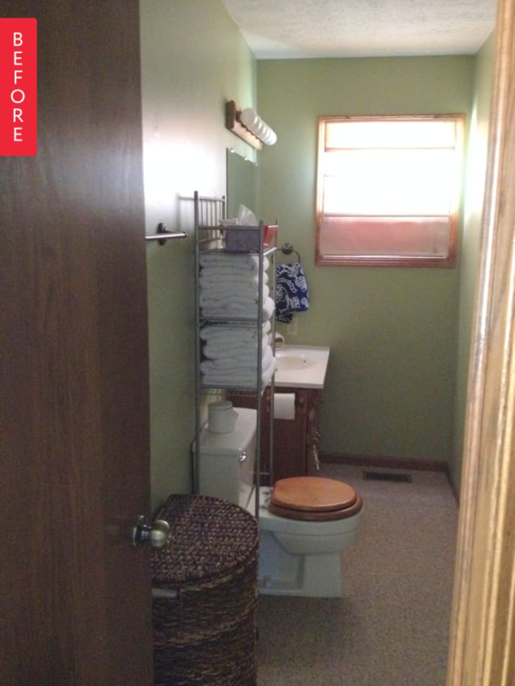 In Ashley’s family farmhouse, only main floor bathroom (and only shower) hadn’t been touched in decades—and was carpeted. She decided to make it more welcoming, without spending a ton of money.