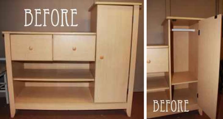 We’ve seen homemade play kitchens made from everything under the sun, but this may be the first one we’ve seen that started as a changing table. It’s an ideal piece of furniture to repurpose since it’s usefulness is usually only a few years. Take a look at how Hannah envisioned this table instead: