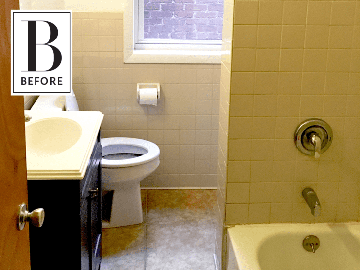 From Melanie: Our 100-year-old row house in the Petworth neighborhood of Washington, DC, had a generous four bedrooms on the second floor but just one tiny interior bathroom for two adults and two kids and no closet in the master bedroom. The existing bathroom was cramped and also tiled, on the floor and walls, in an unpleasant beige.