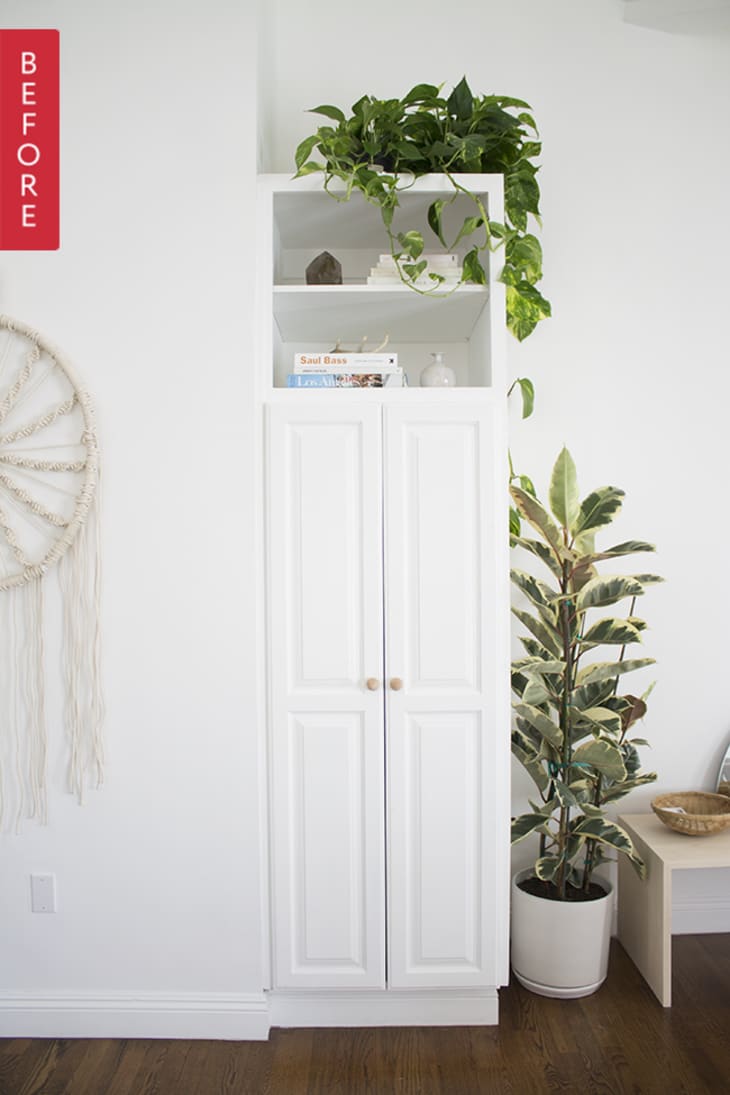 “Wait…that looks familiar.” Is what you may be thinking at this exact moment and hey, you’re right! This cute lil’ cabinet was the after photo in Molly’s cabinet upgrade. She DIYd her way to a subtle, yet impactful aesthetic upgrade to give her cabinets a cohesive look.