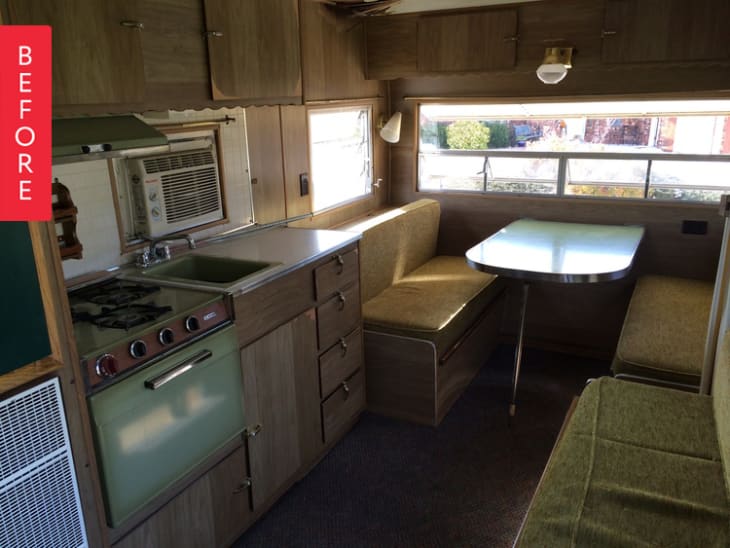 Elsie was dark, dingy and outdated. The couple knew immediately that they wanted a fresh, modern looking interior, which meant scraping off the old faux-wood contact paper and painting the interior a bright bistro white.