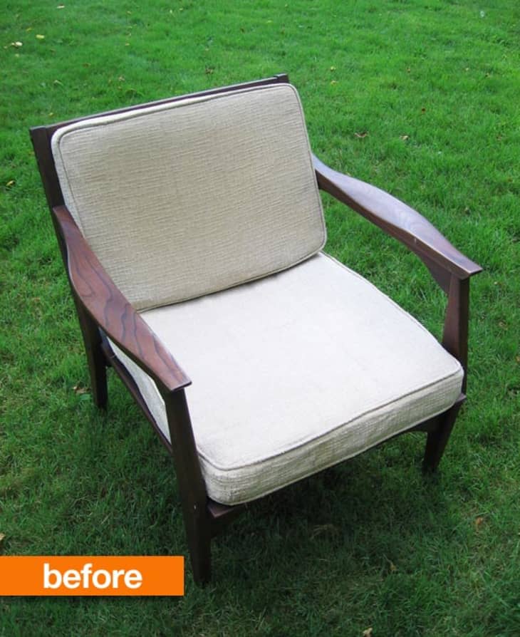 Bargain shopper Erin haggled this chair from an estate sale down to $10. It sat in her home, patiently waiting for a refresh, until she found the perfect fabric. See how she made over this chair for under $50 total: