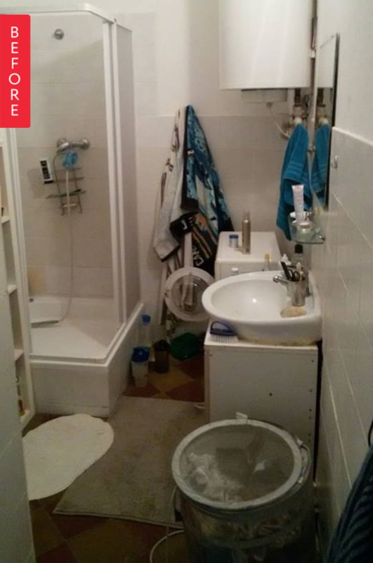From Daniele: Josef gave me full creative freedom when renovating his apartment’s bathroom. The bathroom was old and dark. He wanted to fit in a bathtub, possibly his only request for this project. Given the small size of the bathroom I thought it was a bad idea, but he insisted so we did it.