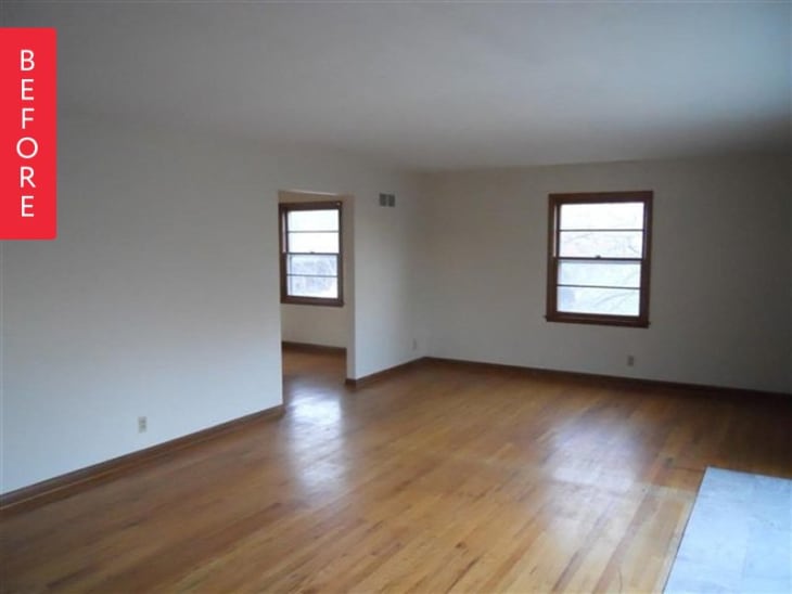 With the wall gone and two columns in its place, one can see from living room to dining room and kitchen. The couple can be in the kitchen and see their one-year-old son playing on the living room rug. They can entertain guests in the dining room while chatting from the stove, all because that central wall that was once the heart of the home has been replaced by openness and freedom of sight and movement. Nice move, guys!