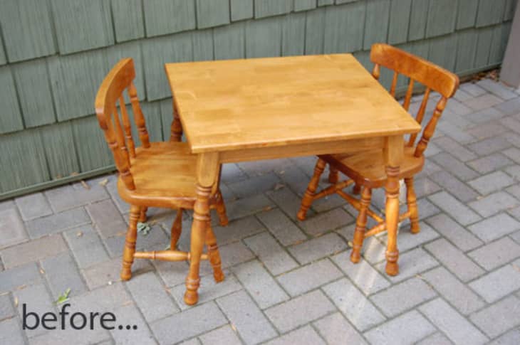 This kids table and chair set was in good condition, but was a bit plain and somewhat dated. As you might guess, a new coat of paint gave it a completely new look and life.