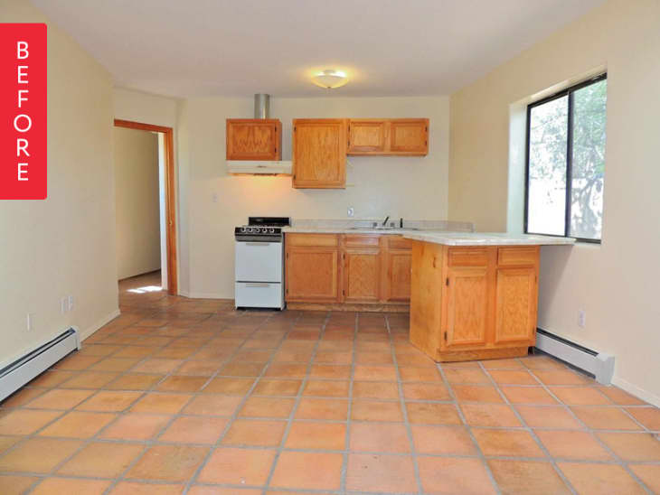 Jill purchased a foreclosure last year, and her first project was fixing up the kitchen which had seen better days. This casita said adios to laminate, honey cabinets, and fire-starting stove!