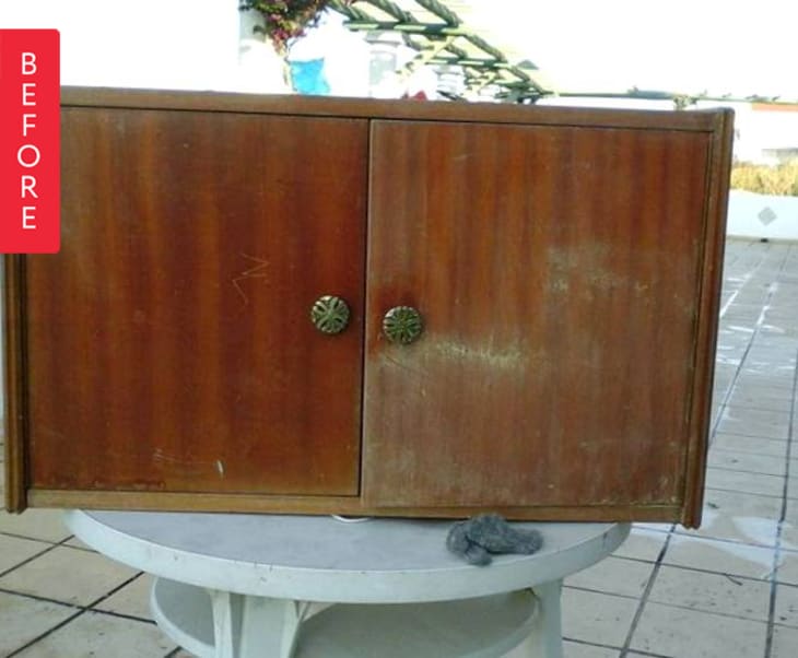I had promised not to remodel anything else, since the house is getting a bit packed, but this guy caught my eye. This little sad cabinet had belonged to a 1960s bookshelf that was long gone and was laying about in the quietness of a my grandparents garage. Legless, scratched and with some water stains, it needed some TLC.