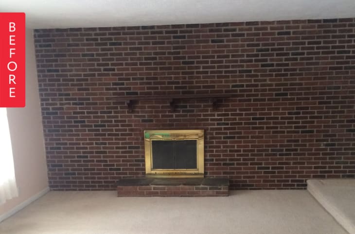From Marisa: When we first moved into our ranch-style home, between the old brown carpet and the dingy brick wall, the open concept layout felt dark and small. While some people love the rustic brick wall, I knew that it wasn’t for me!