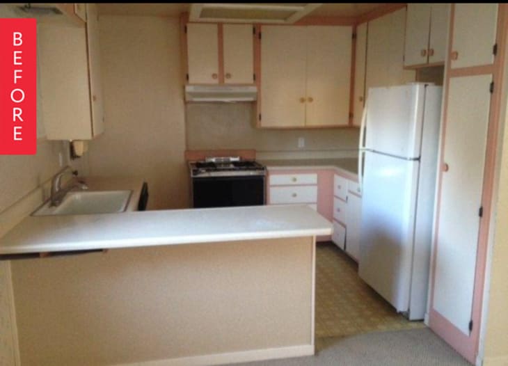 What sounds like a totally stressful situation, moldy walls and dilapidated cabinets, had a silver lining for Kessie. She was able to transform her kitchen into a space she loves, and live to tell the tale!