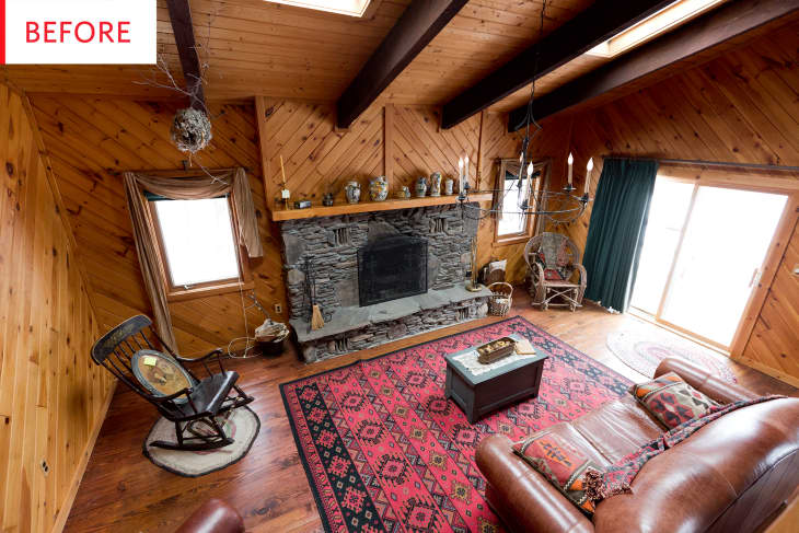 Hyperbolic descriptions aside, the “before” of this ’80s-era cabin wasn’t that bad, but it did lack a certain subtly and softness that the women were looking for in their mountain retreat.