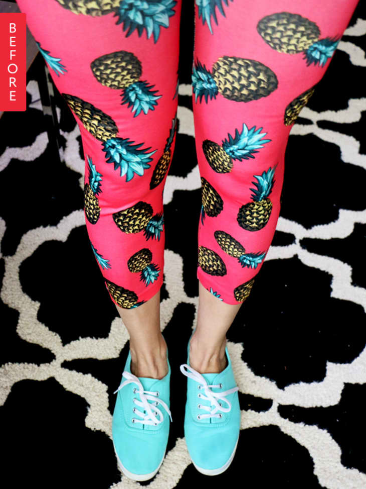 After Meghan impulse purchased these workout leggings while traveling, she decided they were too crazy to wear again, but too cute to toss. Good thing she found those pineapples a new purpose: