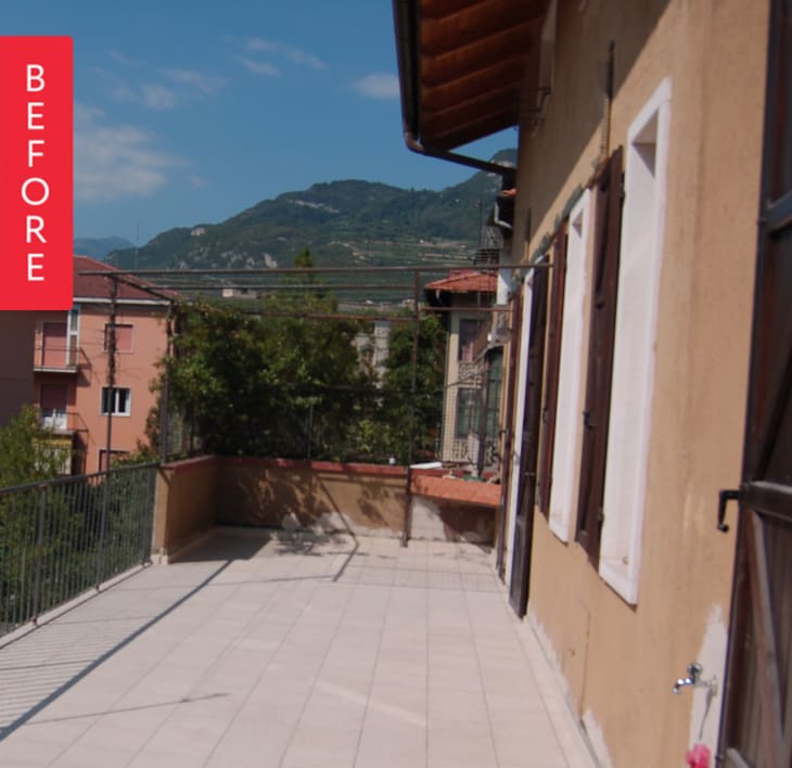 From Silvia: A gorgeous new face for a old and slipshod terrace. It was totally refurbished with wall paint, wood decking, two dark gray panels (Pircher) and a modern Gandia Blasco outdoor set.