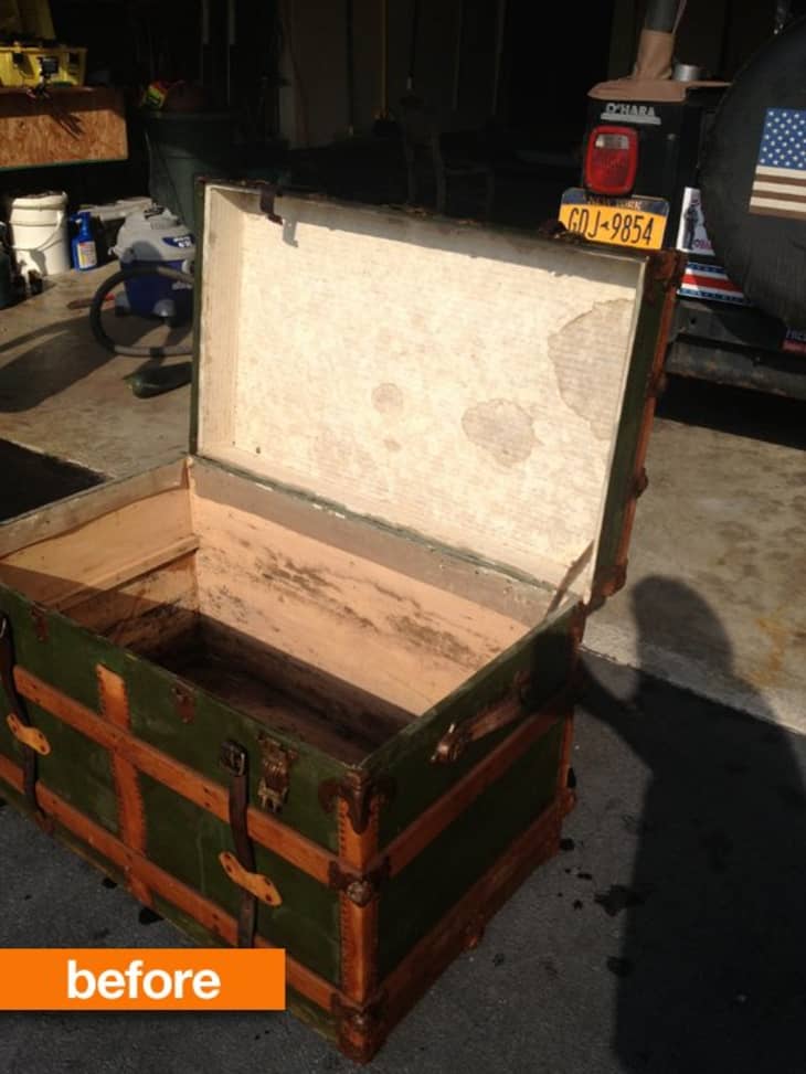 Breanna’s parents pickedup this trunk for her at an antique show for only $10. What a great deal for such a multi-purpose, handsome piece! She added one simple element and is now using this antique in a whole new way.