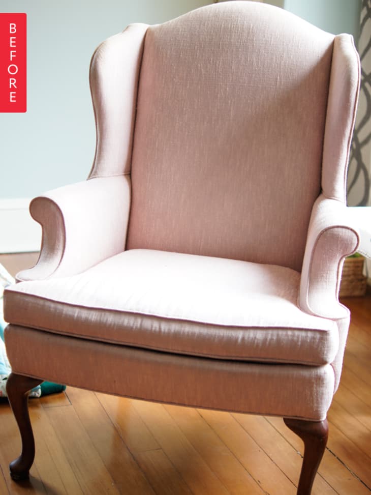 It took three years, but Misha finally worked up the courage to tackle reupholstering this $5 Craigslist chair. We’re so glad she did—check out the impressive after: