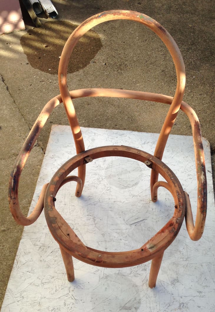 I spotted this gorgeous Thonet-esque chair while strolling through an antique mall a few months ago. It was in supremely rough shape, but I had a vision and at $8 I just couldn’t pass it up!