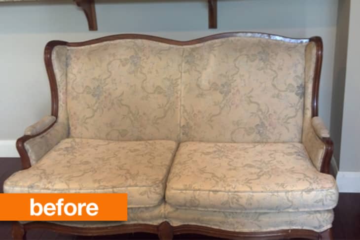 Clever Christa recognized that this consignment shop loveseat had great bones, but it still needed some major…eerr…love, so she got right to work reinventing.