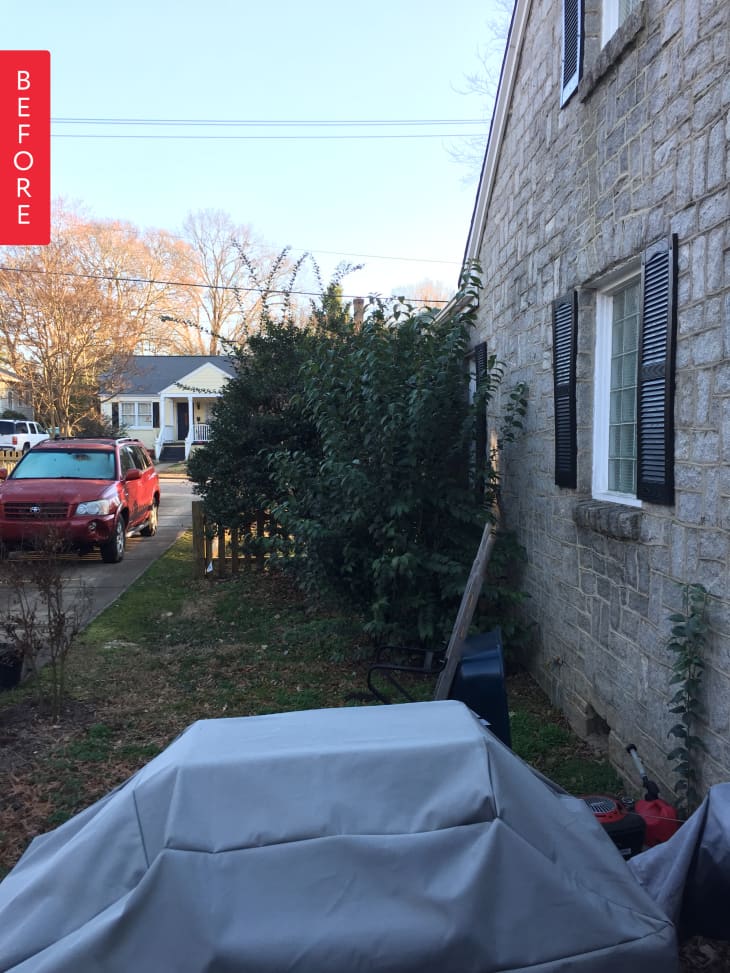 With a shared driveway behind her home, Anne had no private outdoor space to relax and entertain. This overgrown side yard might not scream outdoor oasis, but that’s what Anne created:
