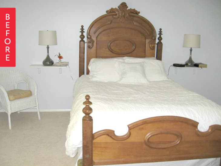 With such a large and in charge antique headboard, Chelsea’s bedroom was looking one-note. Deciding to create an accent wall behind it, she fell in love with, and then rejected, some really expensive wallpaper. See how she transformed this bedroom for $40!