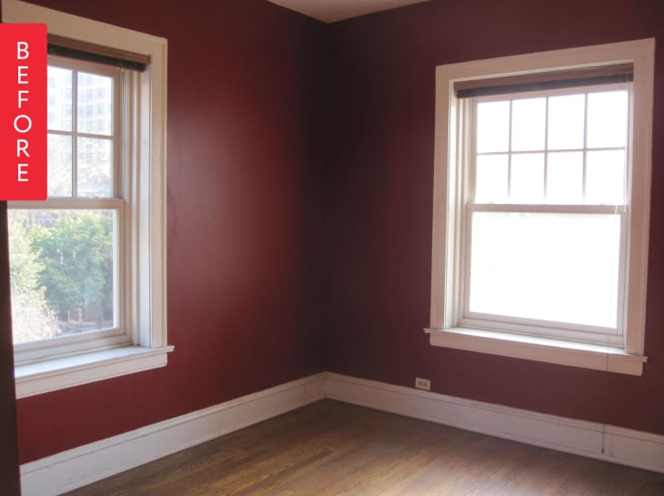 This ruddy red (marsala?) room color is quite nice, but perhaps not entirely suited to its 2-year-old occupant, Vera. Her mother, Petra Probstner, took a big risk and painted murals on all four walls mimicking the urban landscape of Chicago that lay outside the windows. The result is, frankly, breathtaking.