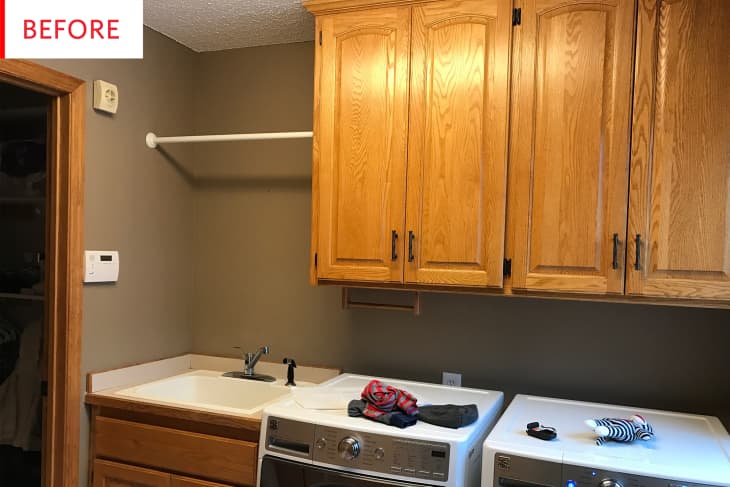 Morgan and her husband recently bought a home and, little by little, are updating each room. First up, the laundry room. One of the things that sold them on the house was having a mud room off the garage, complete with a washer and dryer. As handy as that is, the room was very dark with brown walls, brown cabinets and was desperately in need of an update.