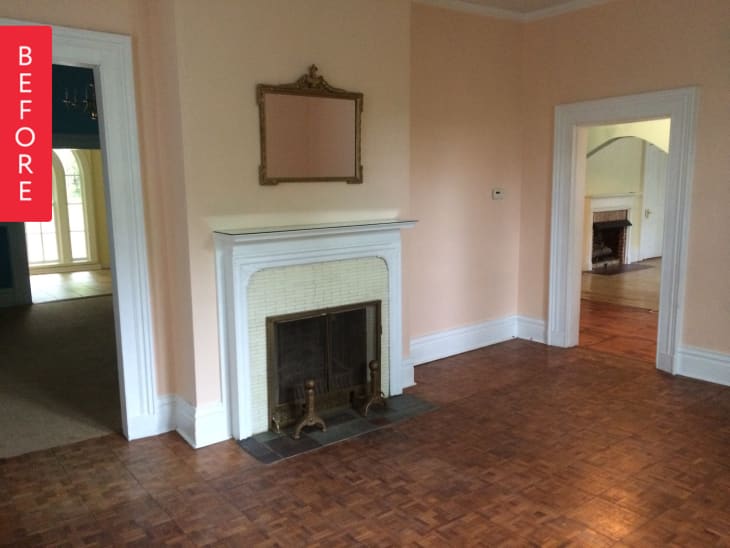 From Natalie: This room has changed over time as my husband and I have lived in the house. We bought our circa 1870s Pittsburgh home nearly three years ago. The house had been divided up into apartments for much of its existence. The before picture is a view that shows a few different rooms — you can see five different flooring choices. Our goal was to bring the house together as a whole, but give each room its own personality. We were actually excited not to have an open floor plan, so we could really play with each room environment separately.
