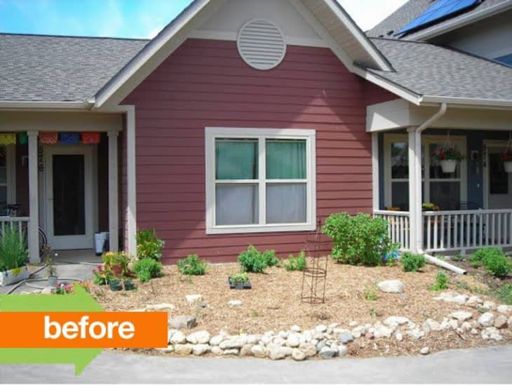 It should also be noted that the before photo wasn’t quite a true before — what Megan started with was much worse than this. While the difference between the two photos still makes for a stunning transformation, I hope you can imagine it without the rocks and mulch so you can get a full sense of Megan’s accomplishment.