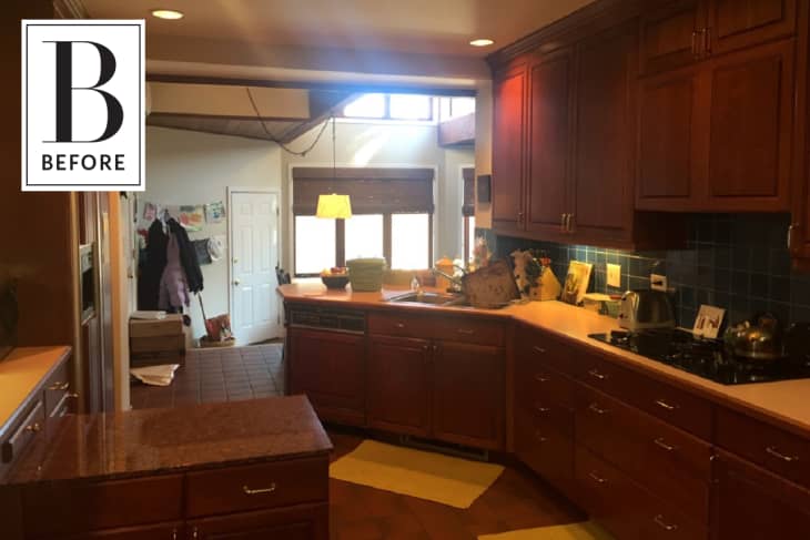 The before and after photos are cropped slightly differently, but still! The kitchen now looks at least twice as big as before. Part of that is due to the fact that Lauren Medicus of The Colorado Nest—the creative force behind this renovation—lightened almost every aspect of the room, allowing the ample natural light to bounce around freely. The bulky sink corner is gone (more on that below), allowing more flow. The odd peninsula was eliminated, opening up the space, and replaced with a graceful table that can be expanded or removed as needed. Flexible space is more spacious!