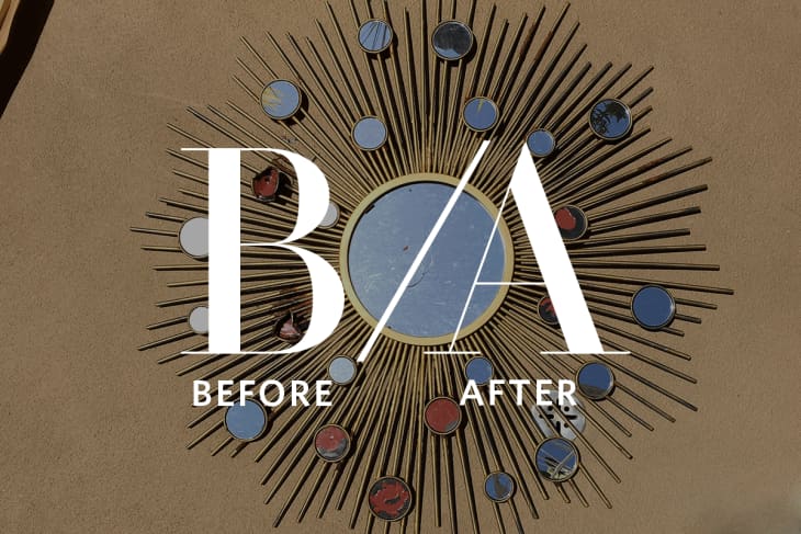 Sarah had an idea of the perfect mid-century-style mirror in her mind. So when she spotted something like that mirror, albeit a rusty, over the top version, she snatched it up. Using the classic DIY elixir of elbow grease and spray paint she turned the whole thing around in one well-spent afternoon.