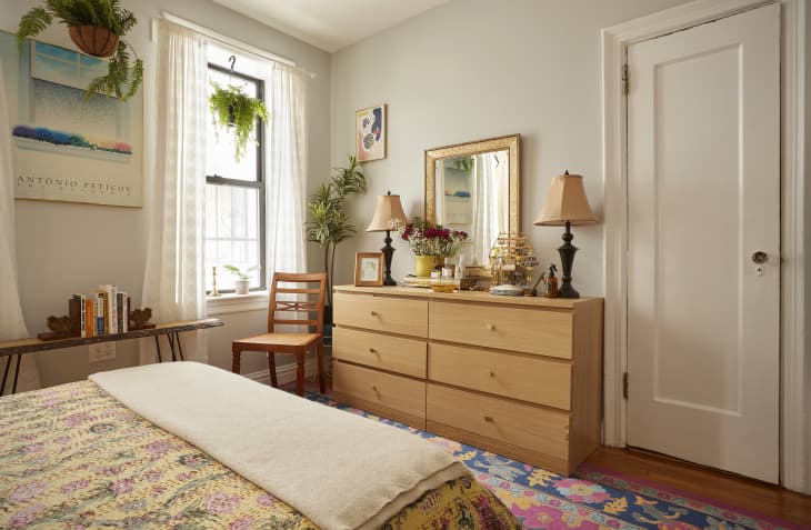 The ultra-slim cabinet is used to hold so many beauty essentials — five times the amount of a medicine cabinet, Kammerer shares in the video. And you can’t help but love the fact that it’s hinged, so it fits in seamlessly with the door, and a magnetic closure means the cabinet door won’t swing willy-nilly.