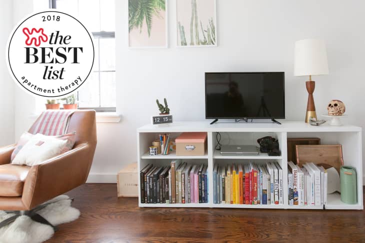 Our editor-in-chief has these sleek shelves in her own apartment—she stacked five on top of each other to create a floating “bookshelf” on the wall. They’re sturdy, space-saving, and made of solid steel. Plus, they fit a surprising number of books. Price tag too steep? You can find similar looks on Amazon for less—we scoped this set of six from Wallniture out for just about $100.