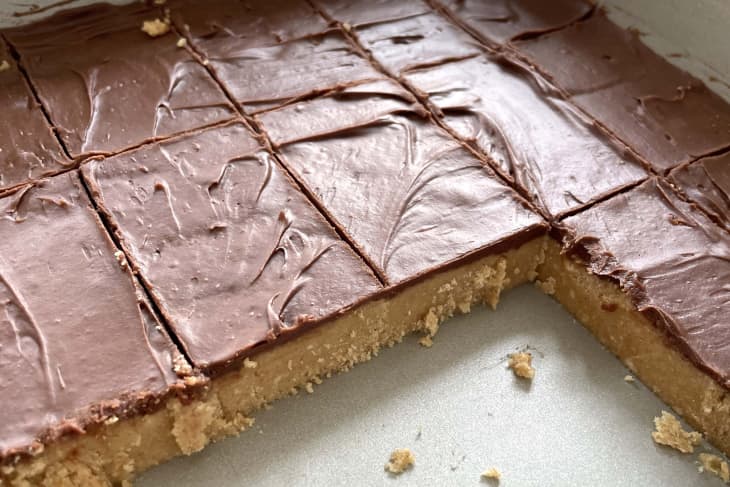 “The taste and texture — smooth with just a slight fine grit — was like a Reese’s [Peanut Butter] Cup dream,” says Margaret, our video producer. The chocolate is more akin to a cake frosting than the chocolate coating you’d find on a Reese’s, but the peanut butter filling layer is eerily similar to the cup’s interior. “I like that the amount of sugar didn’t seem through the roof,” she adds. “It could be slightly less sweet with some sea-salt scattered on top, but as is, it was wonderful.”