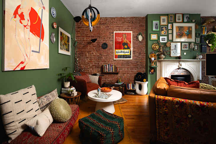 Gallery walls are a hot topic in contemporary interior design right now, but they suit the free-spirited bohemian style well. Gallery walls can be used to display family photos, personal momentos, houseplants, and artwork, as seen in this boho Brooklyn apartment.