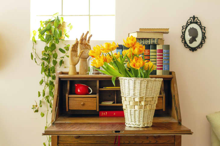 If you end up not liking the sun-bleached look (hello, bright yellow wicker) you can always stain your baskets a darker color. So next time you’re at the thrift store, pick up a few baskets and give this hack a try — then let us know how it went.