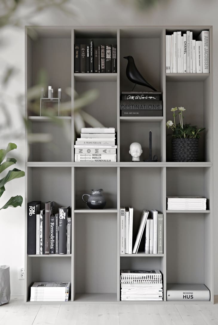 Maybe gray isn’t your thing, or you have a more vertical space to fill. Not to worry! You can also customize the VALJE by cutting the existing shelves to make room for various decor. Annie from Gold Vibes Only created an L-shaped cubby by cutting the existing shelving in half, and also topped the largest VALJE shelf with a smaller version to add height and create a more custom piece to fit her space.