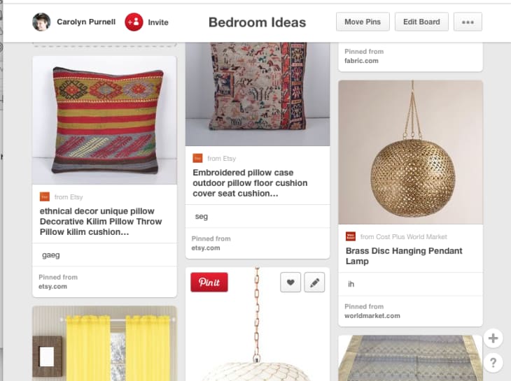I also used the Pinterest board to collect things that I had a less distinct idea about. I knew I wanted patterned textiles, but I wasn’t sure whether I should go for silk ikat pillows, kilim pillows, or some other kind. Collecting them all together, again, helped me compare them side by side, and it helped me make a more informed decision about which I liked more.