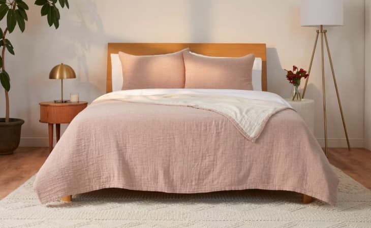 Now, as I stated above I am not one for lightweight bedding, however, given how chic this set is (and the fact that I’m already a fan of Casper’s sleep products), this one seemed like a great place to start. After I packed away my comforter, I unpacked this set and gawked at just how lovely it was. First of all, the color is spot on; with a mauve-pink hue, spice is the perfect name. Second, it’s incredibly soft, and not in that “it’s-so-cuddly-I’m-going-to-overheat” way. As I held it against my skin, I knew it was going to be a winner. When it was finally time to head to bed, I pulled the coverlet back, slid underneath, and found that the underside of the blanket is even softer than the outside — a big win. I turned on my fan (and tuned off my A/C), draped the blanket over me, and quickly fell asleep. When I woke up, I was cool, comfortable, and confused — had I really just become a lightweight bedding convert overnight? Seems so.