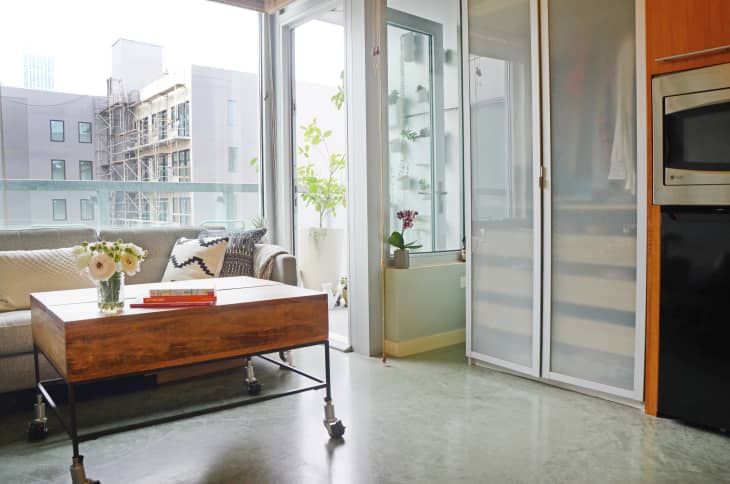 And when it comes to types, the ones in this post are just the best for pulling double duty in a small home. Known as pop-up coffee tables, convertible coffee tables, or to small space dwellers, a godsend, you can see firsthand how powerful this type of furniture piece is in a small space in the tour of this California couple’s home, where they share a teeny 240-square-foot studio.