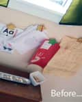 Before & After: Kim’s Craft CabinetWhen I moved into my apartment, the built-in cabinet in my bedroom was shoddily painted in yellow and blue with brown “accents.” To make matters worse, there were so many layers of paint that the hinges didn’t work well.Basically, I spent several hours over two weeks chipping away at the old paint — a process I found surprisingly satisfying. Beneath the yellow, blue, and brown, I found pink, gray, and lime green.