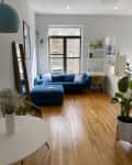 Kate and her husband loved this small unit's natural light, original details (like molding and inlaid hardwood floors), and location, despite not having been updated in many years. "We knew we wanted to keep as much of the original charm as we could, while also updating it to bring in natural elements and modernize the space."