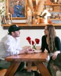 Dani Dazey, the owner and founder of the clothing line, Dazey LA, and the interior design studio, Dazey Den, and her partner, Phillip Butler, live in this colorful, patterned house in Los Angeles with their dogs, Franklin and Yuki.