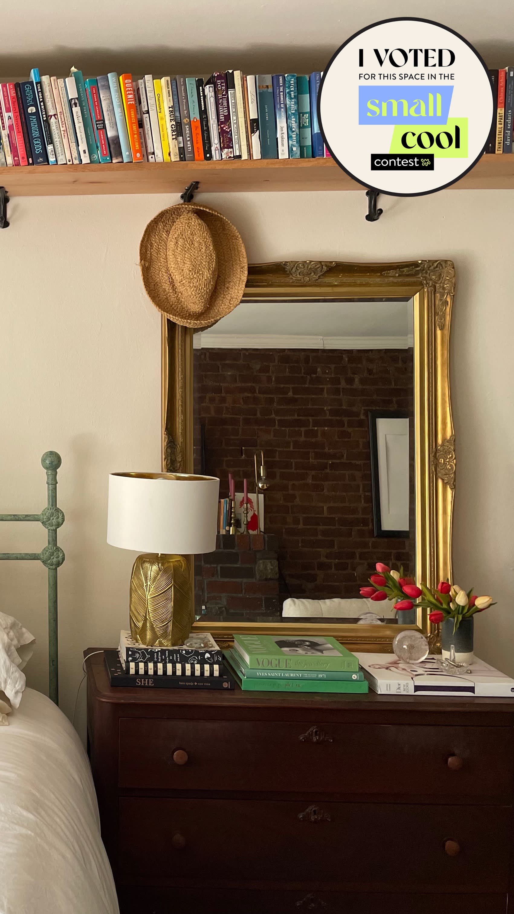 I never thought I'd be able to afford living on my own in Manhattan, but I got a great deal on this ground-floor studio. It doesn't get great light, but I've tried to lean into that and make it really cozy and warm. I've hauled much of the furniture across the country with me. The chair, armoire, coffee table, and kitchen storage shelf are all hand-me-downs from family. The bed frame and dresser were both thrifted from previous apartments. I had to figure out how the pieces that were important to me would fit before I bought anything else.