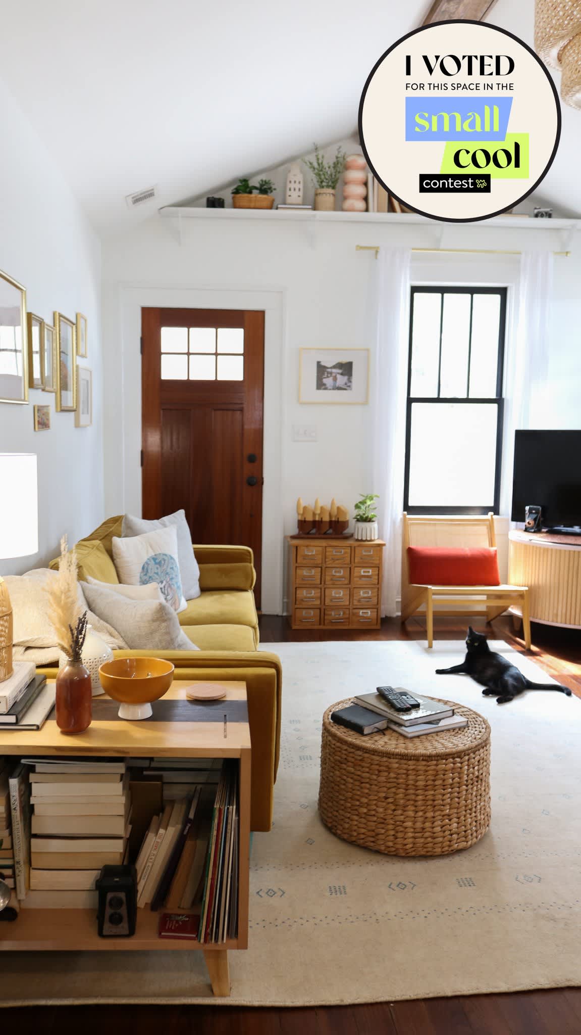 Living room: The heart and soul of it all! The chair in front of the window is our dog's favorite spot to observe the neighborhood. (Image credit: Cat Hart)Living room: The heart and soul of it all! The chair in front of the window is our dog's favorite spot to observe the neighborhood.