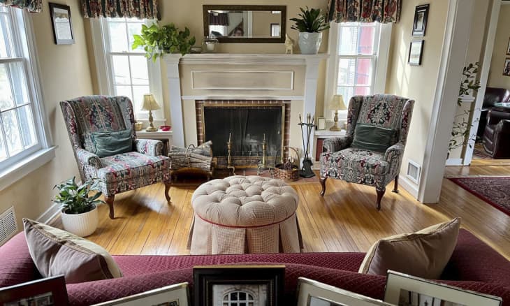 Of course, her Facebook Marketplace finds aren’t always function-first. When she was looking for something to complete her formal living room, she thought an ottoman would give the space a “cozy” vibe. “You can use it to rest your feet — or for extra seating — but I thought it’d also be warm and inviting,” my mom shares.