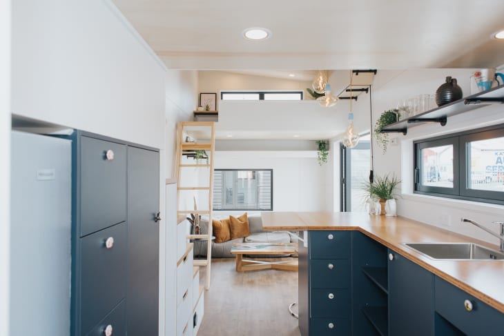 Step Inside a Stylish Tiny Home With Enough Room For a Queen Bed, Office, and Two Cats